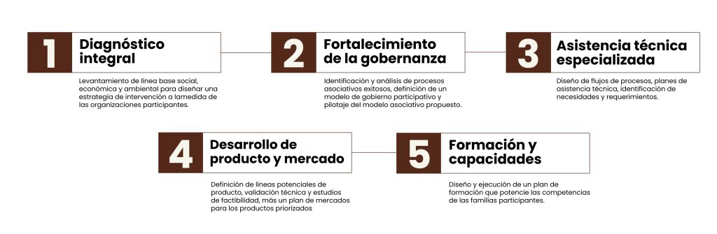 Para lograrlo, Grupo Portafolio Verde ha diseñado un proceso en varias fases que combina diagnóstico, fortalecimiento organizativo, asistencia técnica, desarrollo de producto y estrategias de comercialización: